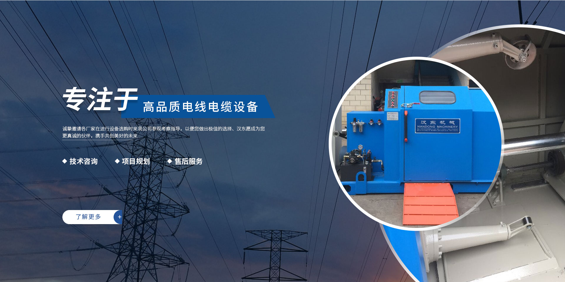 常州漢東機械始創(chuàng)于2006年,是集電線電纜機械設計、開發(fā)、制造、安裝、調試為一體化的高科技企業(yè)。本公司自開業(yè)以來,積極引進日本,歐美等國外電線電纜設備之先進技術,先后成功推出了達到行業(yè)先進水平的電線電纜設備,主要產品有擠出、繞包、束線、成纜等電線電纜固定設備。在提供系統(tǒng)設備的同時,還向客戶提供售前技術咨詢、項目規(guī)劃、以及售后服務。我公司本著“以人為本、科技先導、用戶為上”的宗旨,為客戶提供牢靠的產品與省心的服務。漢東愿成為您更真誠的伙伴,攜手共創(chuàng)美好的未來! 了解更多+
